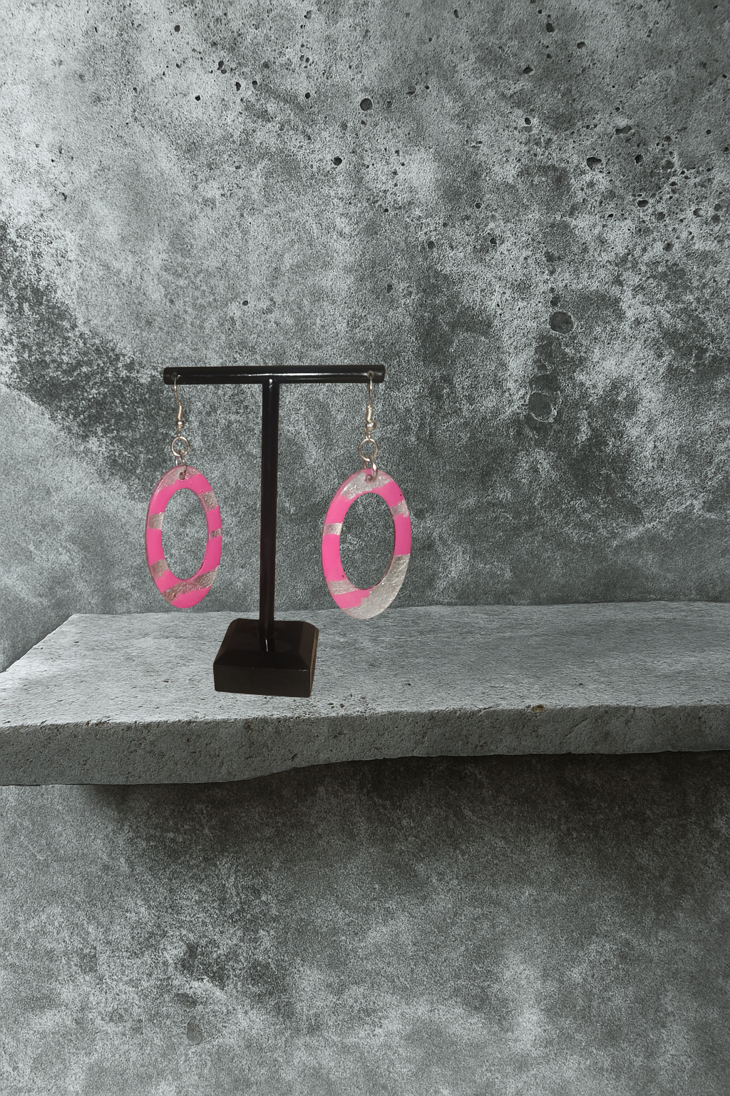 These are pink hand painted earrings with silver accents and are appropriately 3 inches