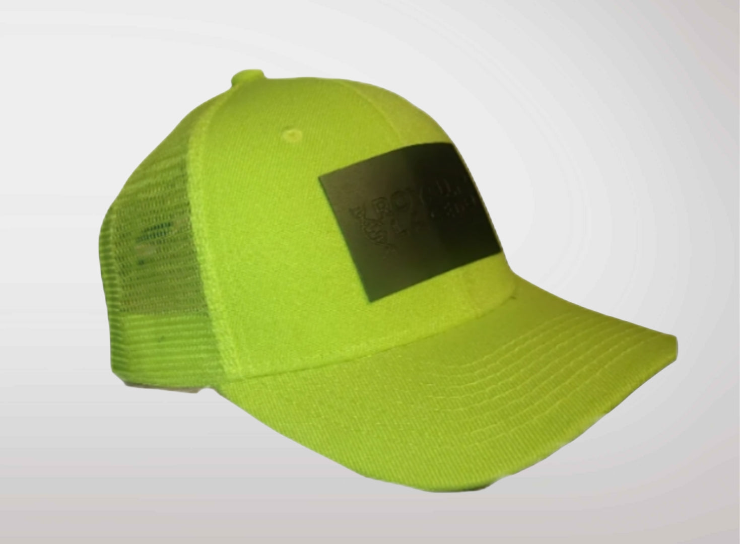 Neon trucker hat,with black patch.